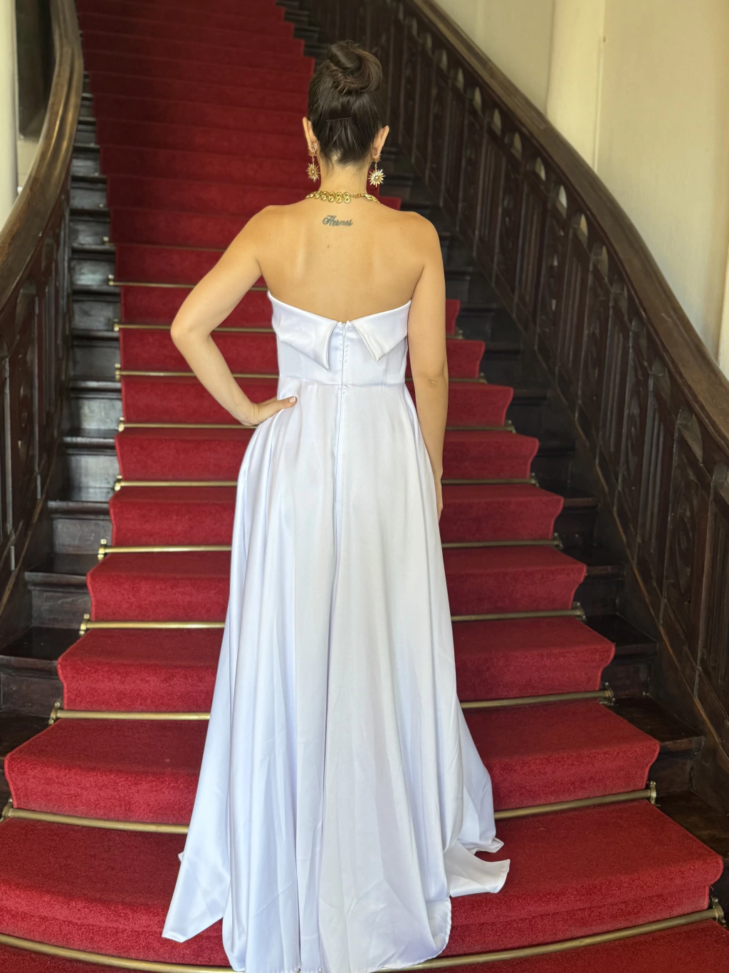 Descrição: O Vestido Giovana tomara que caia é uma combinação perfeita de elegante e funcionalidade. Com uma saia bem comprida e fluida, o modelo apresenta bolsos discretos nas laterais que adicionam um toque moderno e prático. A fenda na lateral esquerda traz movimento com um toque de sensualidade, enquanto o forro e o bojo garantem conforto e suporte. O fechamento com zíper nas costas, acompanhado de um detalhe delicado, proporciona um ajuste perfeito e um acabamento sofisticado. Ideal para eventos especiais, como casamentos ou eventos de gala, este vestido é deslumbrante.