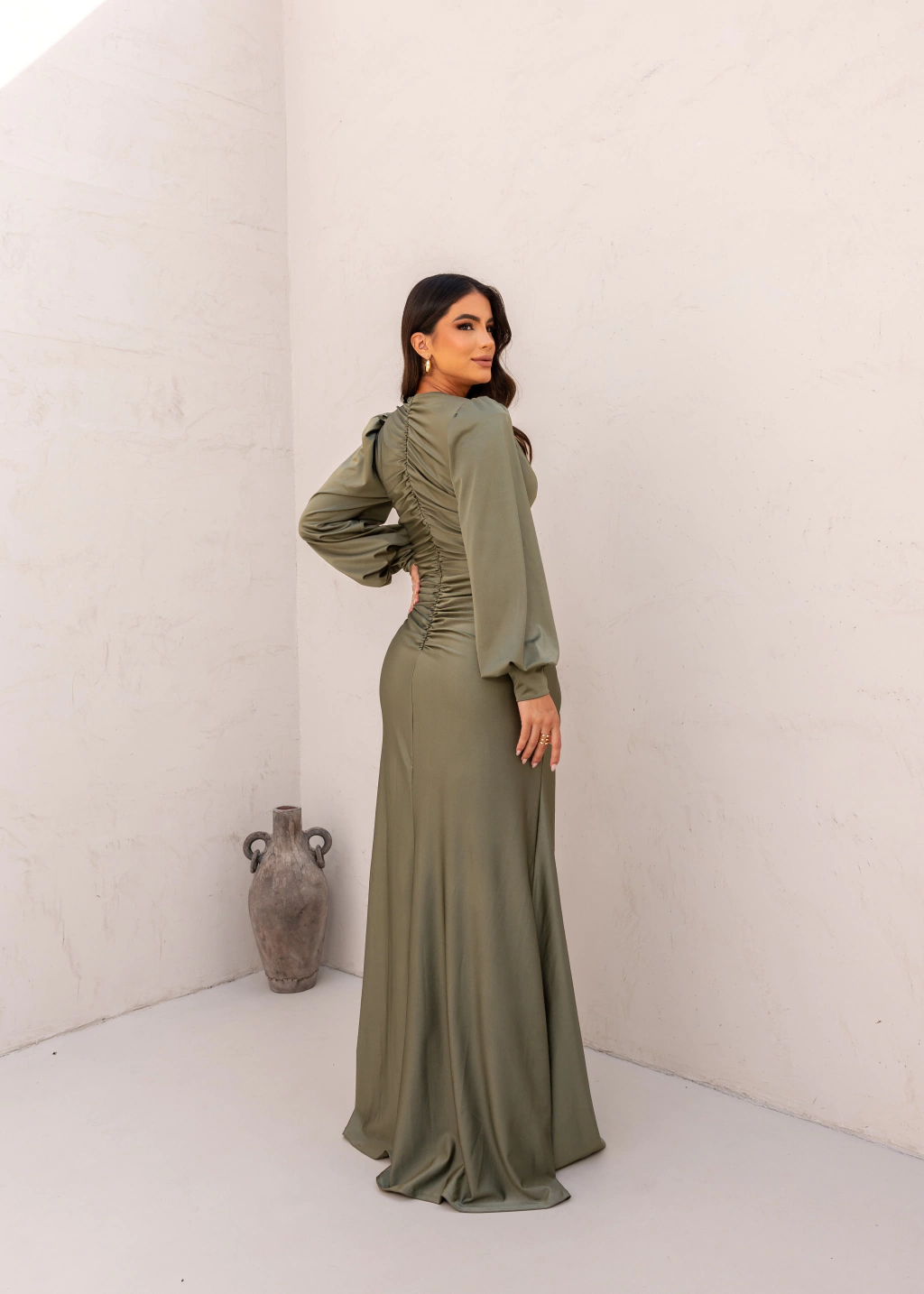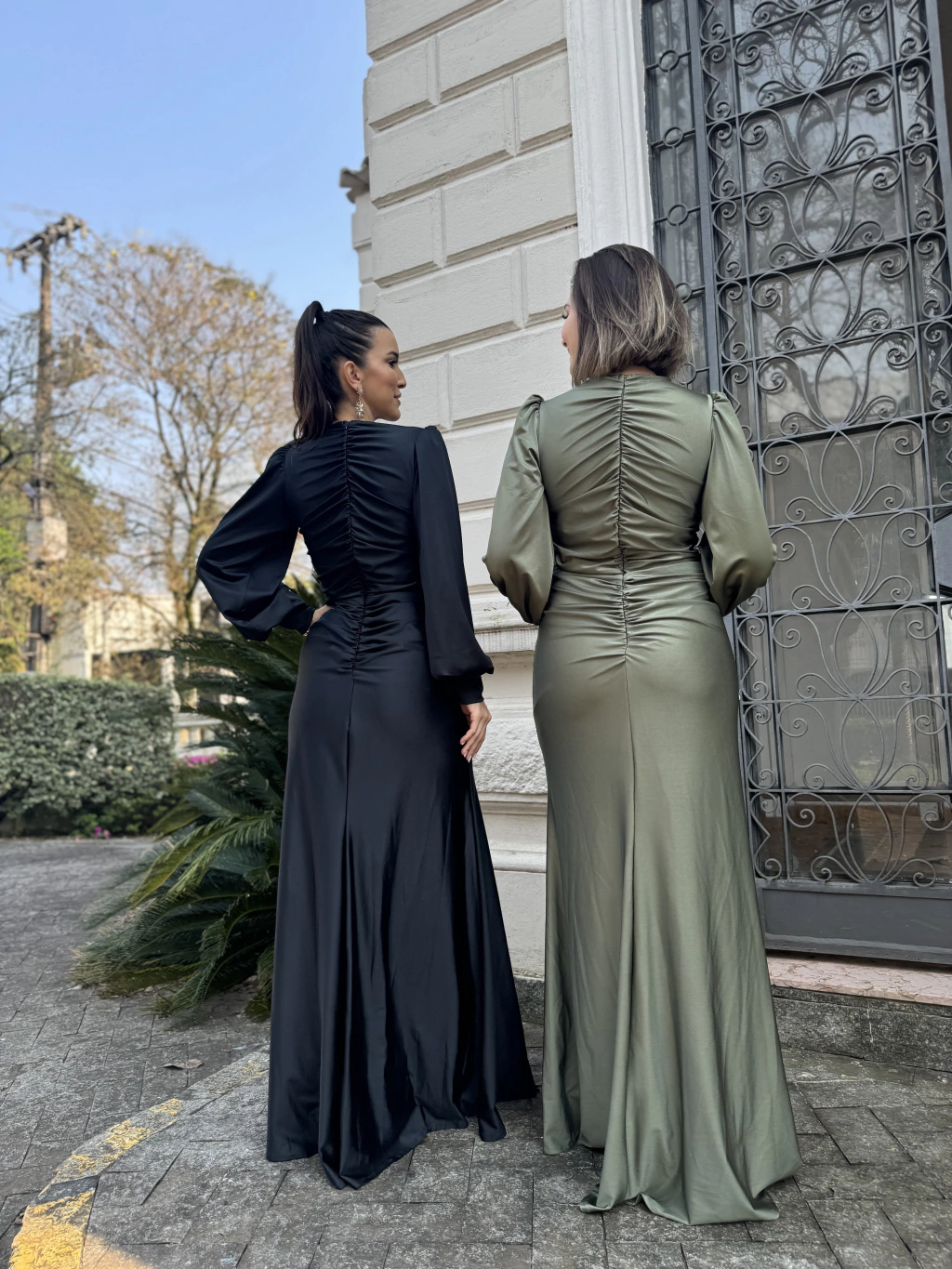 Dicas de como usar: O Vestido Mayara verde oliva é perfeito para casamentos, formaturas e eventos noturnos que pedem sofisticação. Combine-o com acessórios dourados para realçar o tom elegante do verde e criar um contraste luxuoso. Uma clutch dourada ou nude complementa o look com sutileza, assim como um salto de tiras finas na cor nude ou metalizada. Finalize com joias delicadas para um visual sofisticado e equilibrado.