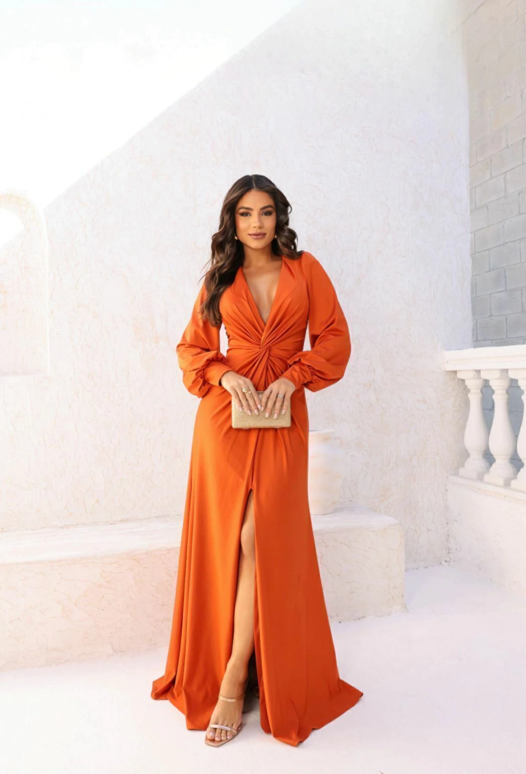 Descrição: Elegância e sofisticação definem este deslumbrante vestido de festa. Com mangas longas e um charmoso detalhe cruzado na frente, este modelo valoriza a silhueta de forma única. A fenda frontal adiciona um toque de ousadia, revelando sutilmente as pernas e proporcionando um movimento fluido e gracioso. Confeccionado em tecido acetinado, o vestido oferece um brilho suave e um caimento impecável, perfeito para eventos especiais. Ideal para quem busca um visual clássico com um toque moderno e cheio de personalidade.
